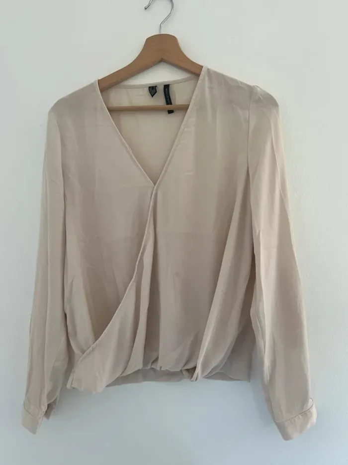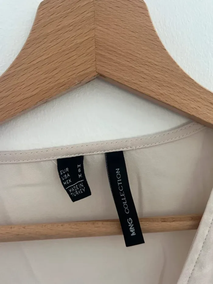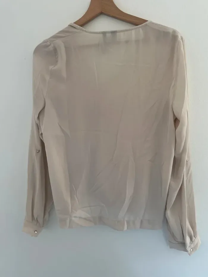 Blouse manches longues Mango Couleur beige crème marron clair Cache-coeur Taille M Petit prix : une tâche sur l'avant