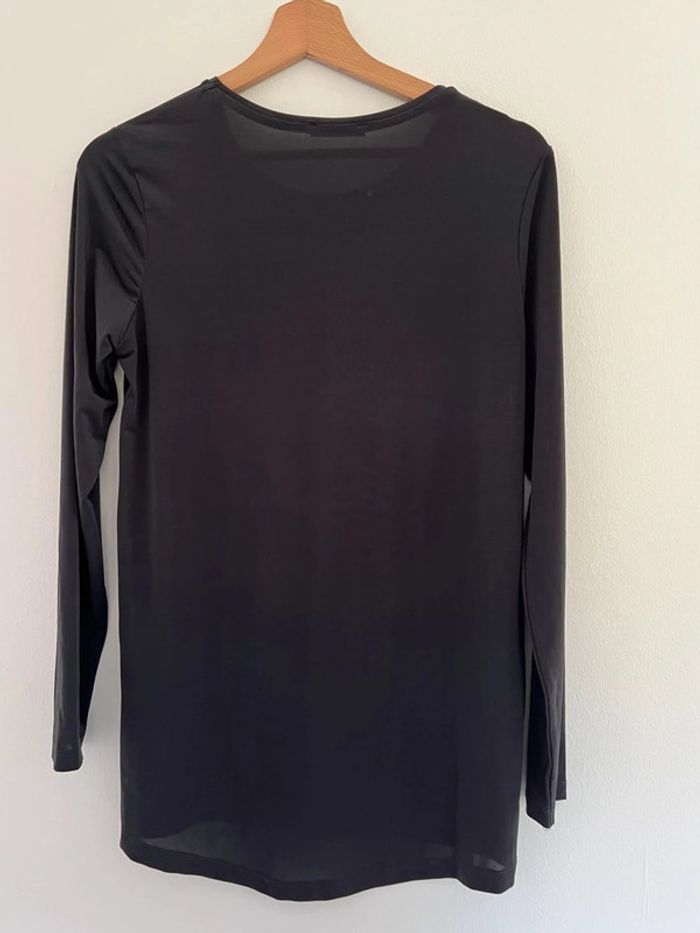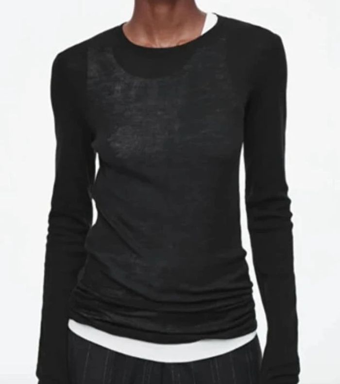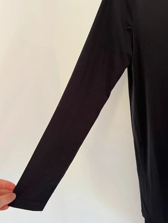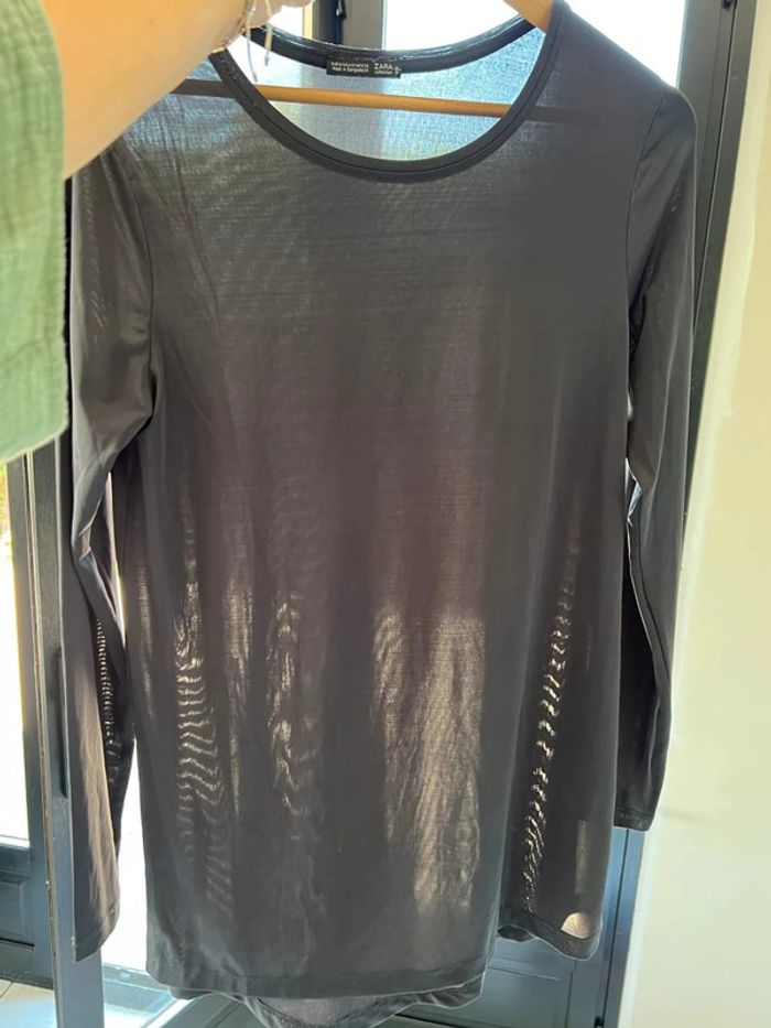 Haut noir manches longues Zara Col montant Effet par transparence Taille S Très bon état Assez grand et long, superposition possible avec un débardeur pour en faire un petit pull
