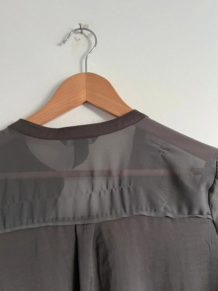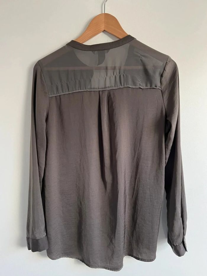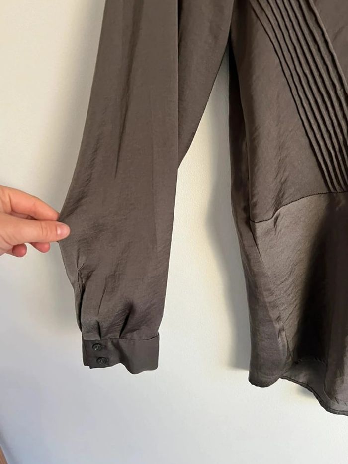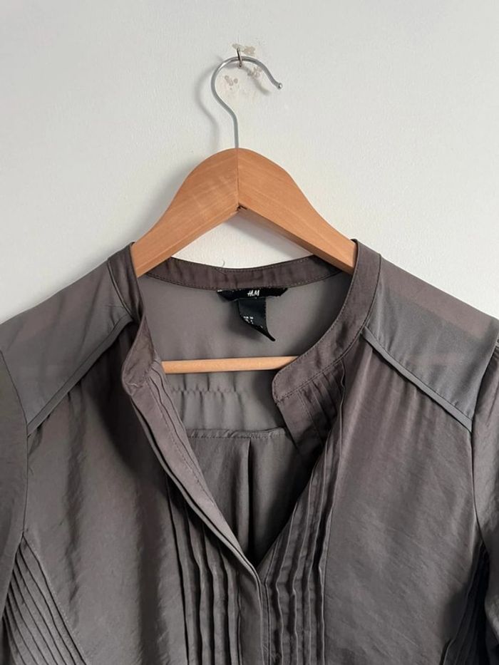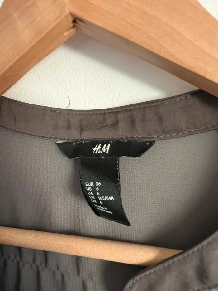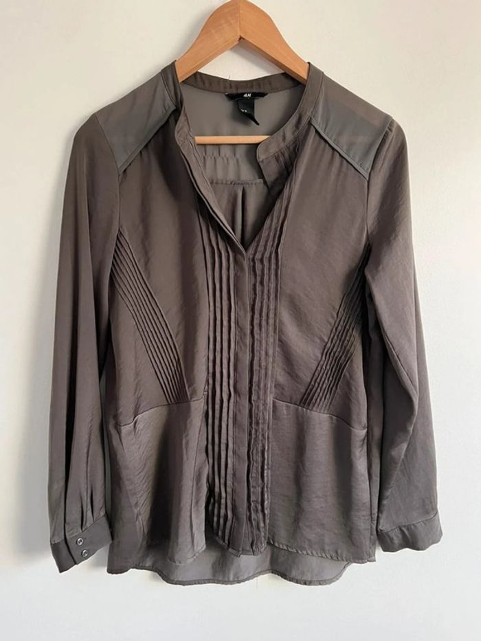 Blouse marron satinée H&M Détails plissés et transparence aux épaules Taille 36 Très bon état un accros dans le dos (dernière photo) Couleur chaude, tendance pour les looks d'automne.