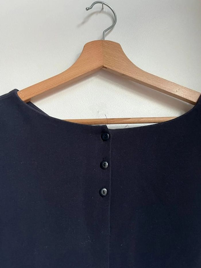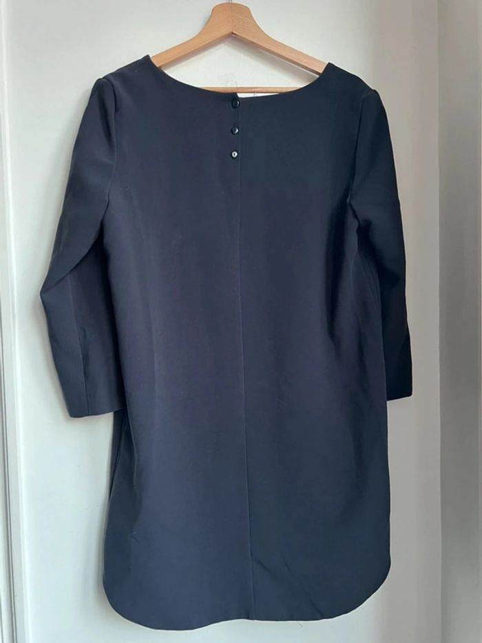 Robe bleu nuit ba&sh classique Taille 3 Largeur à la taille : 52cm Coupe droite manches 3/4 Décolleté asymétrique Très bon état