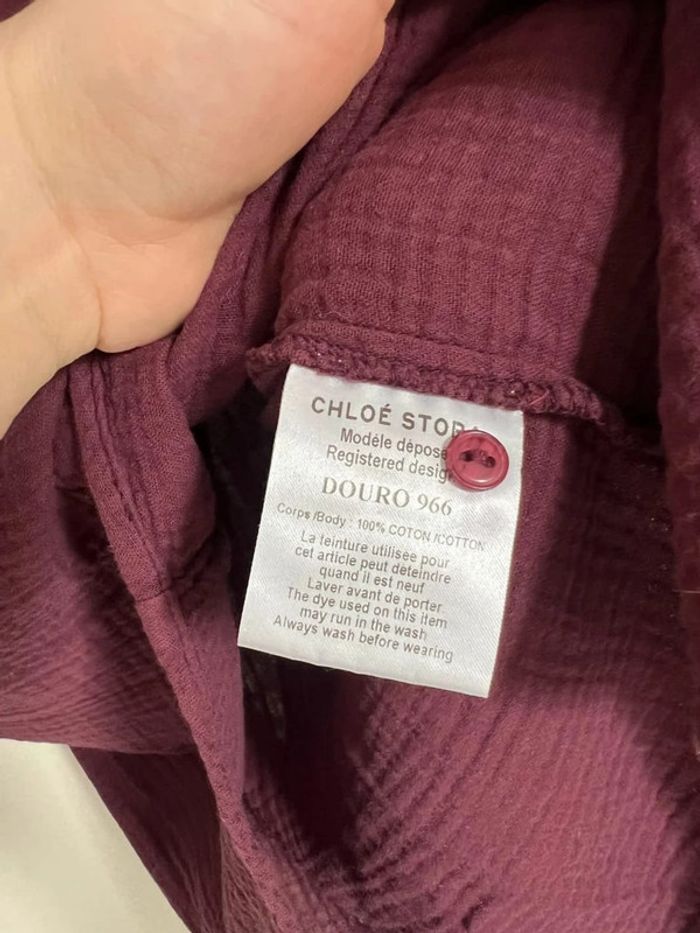 Chemise en gaze de coton bordeaux Chloé Stora Taille 34 (oversize) Très bon état général, quelques petites traces 100% coton