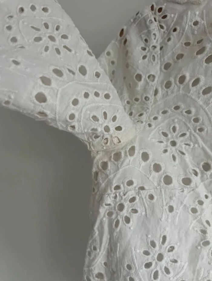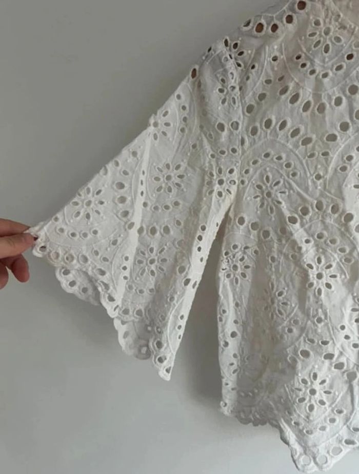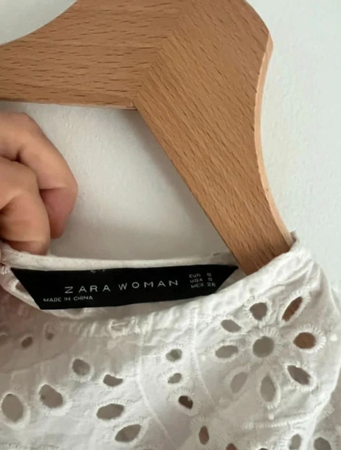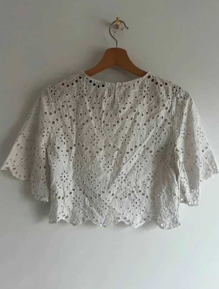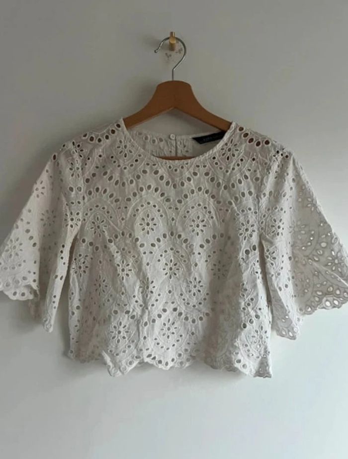 Haut blanc court broderie Zara Taille S bon état : légère coloration sous les aisselles (voir dernière photo)