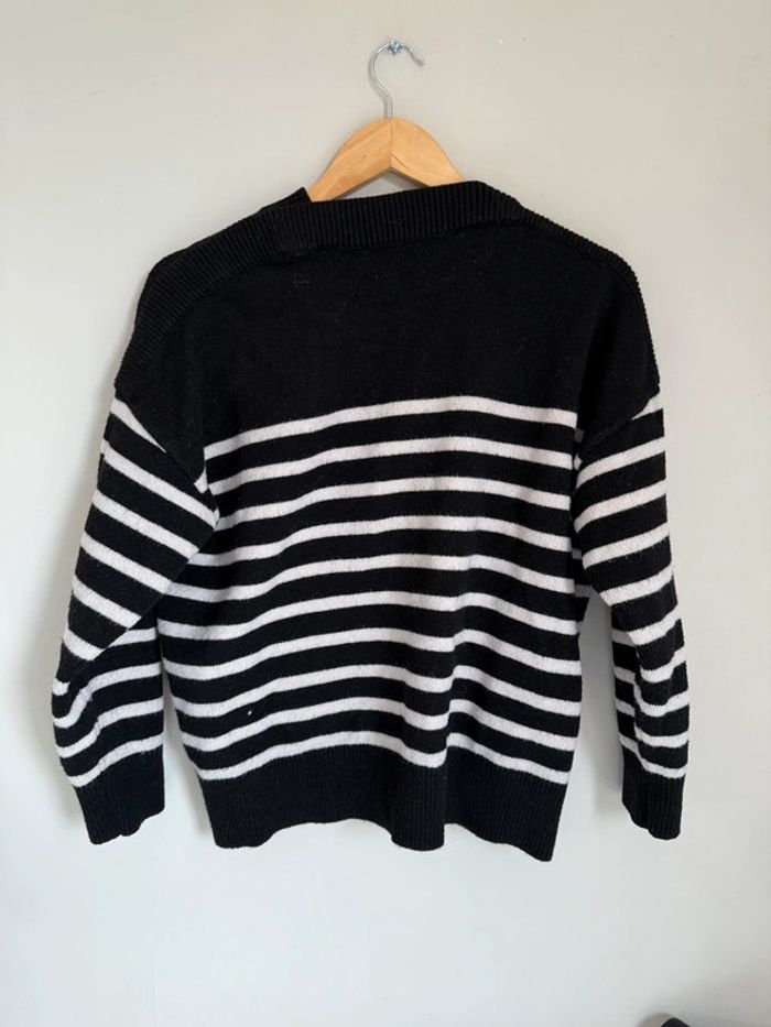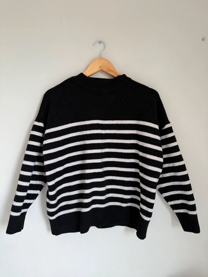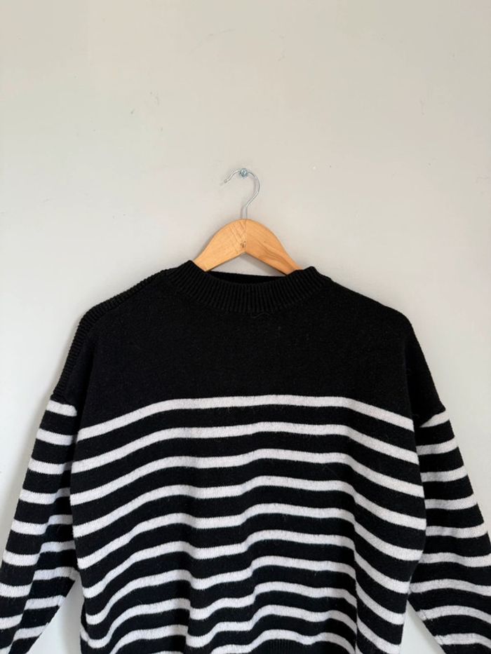 Pullmarinière Zara Noir, bandes blanches Porté Taille S