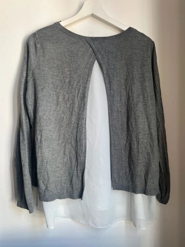 Pull H&M Bi-matière gris chemisier blanc Taille L 1 petite tâche sur l'épaule` Très bon état général