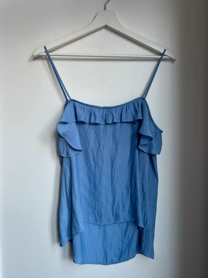 Débardeur très léger bleu ciel H&M Bretelles fine Matière légère effet mousseline Volant Taille 42 Très bon état