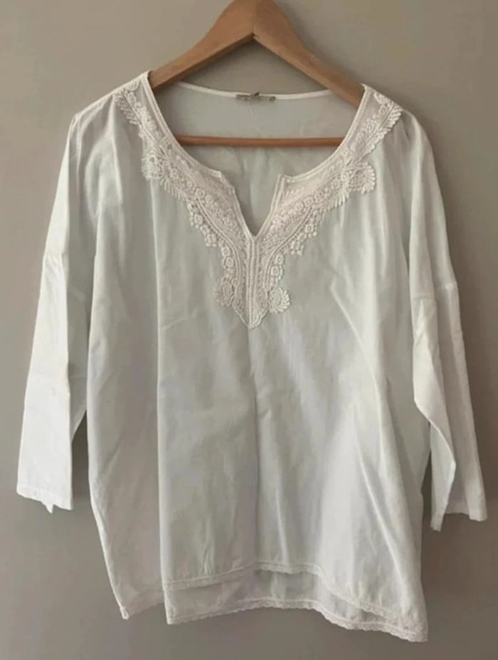 Tunique blouse tunisien Best Moutain Blanche avec col V macramé Taille unique Très bon état