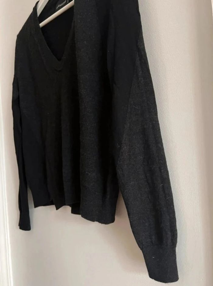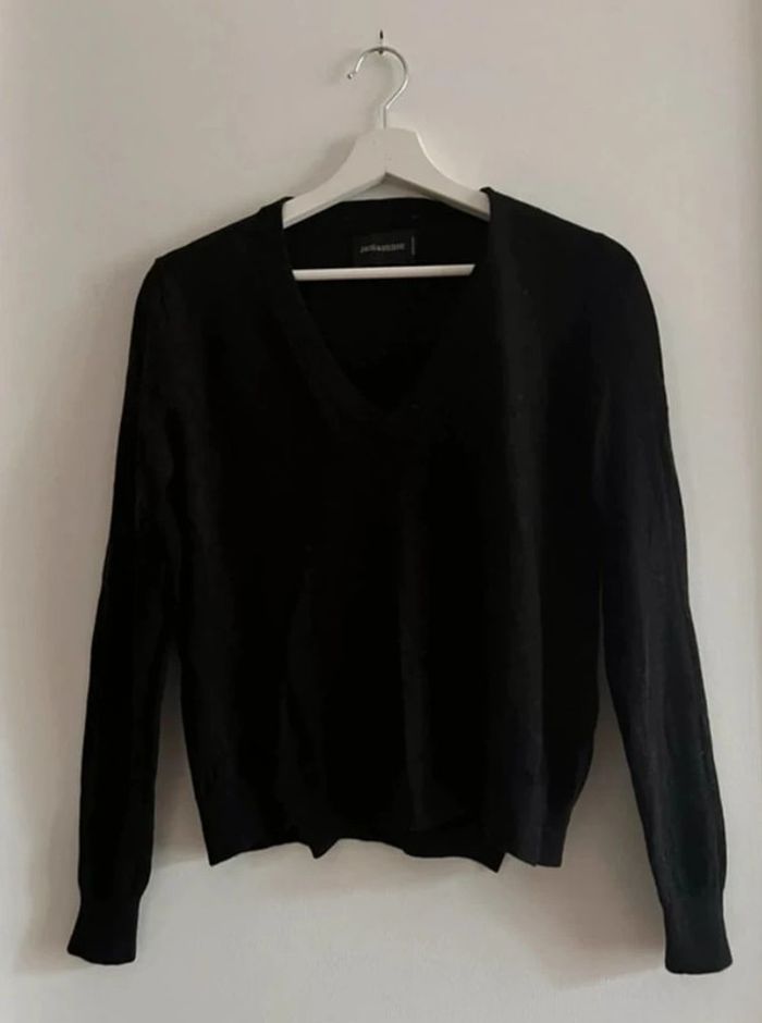 Pull gris foncé et noir Zadig & Voltaire Forme asymétrique 1 accro dans le dos recousu Col V Taille S