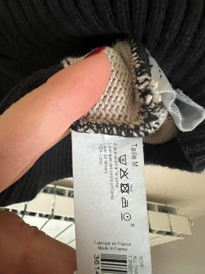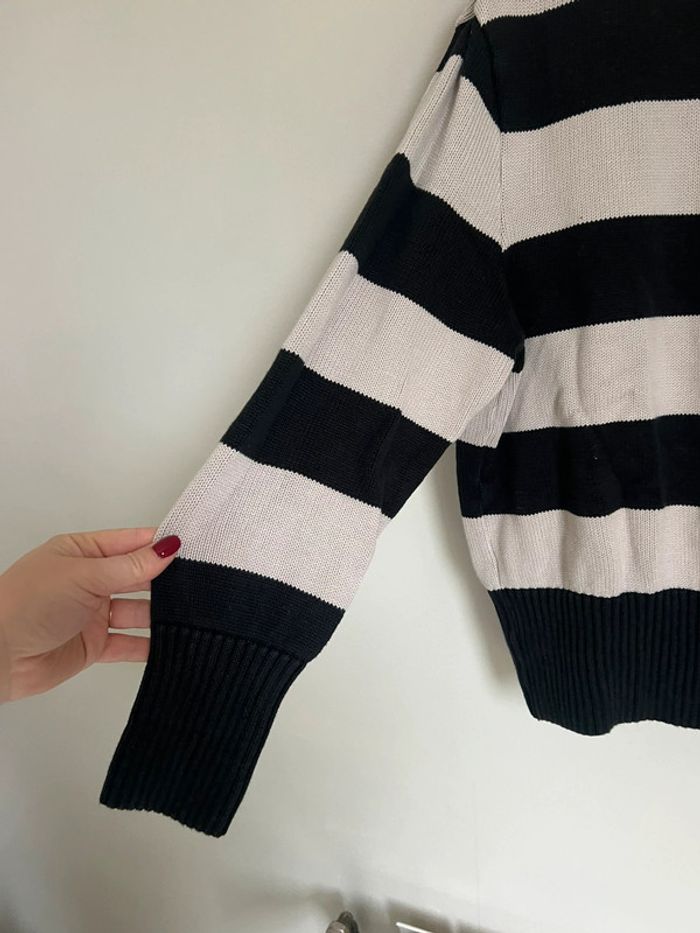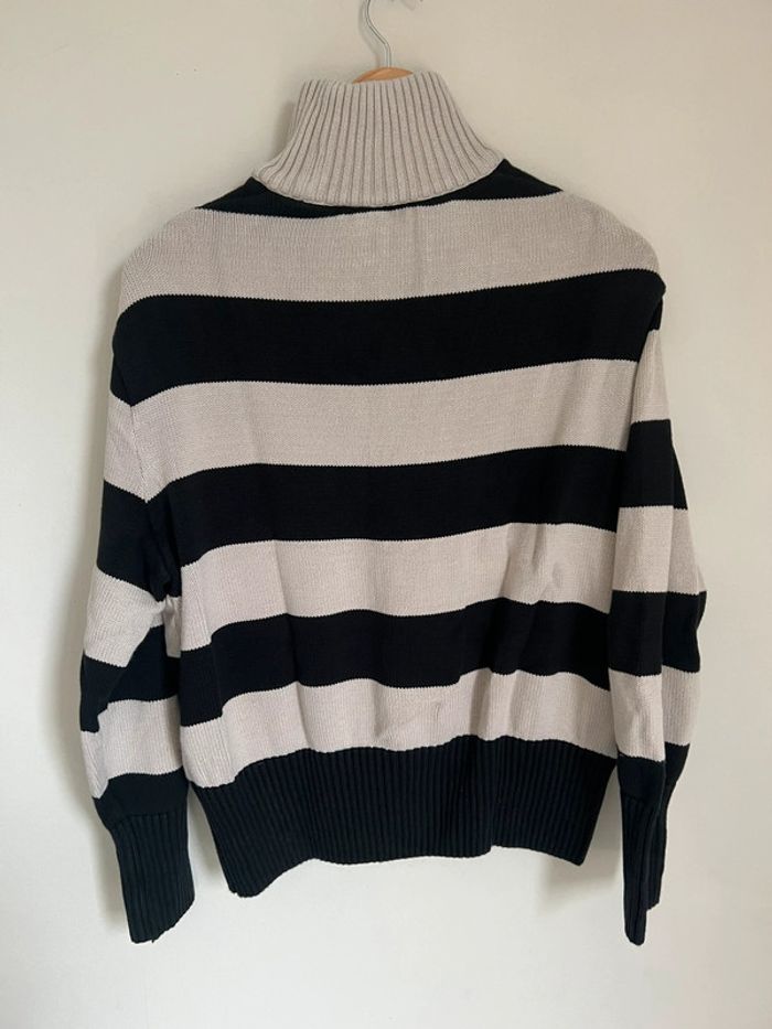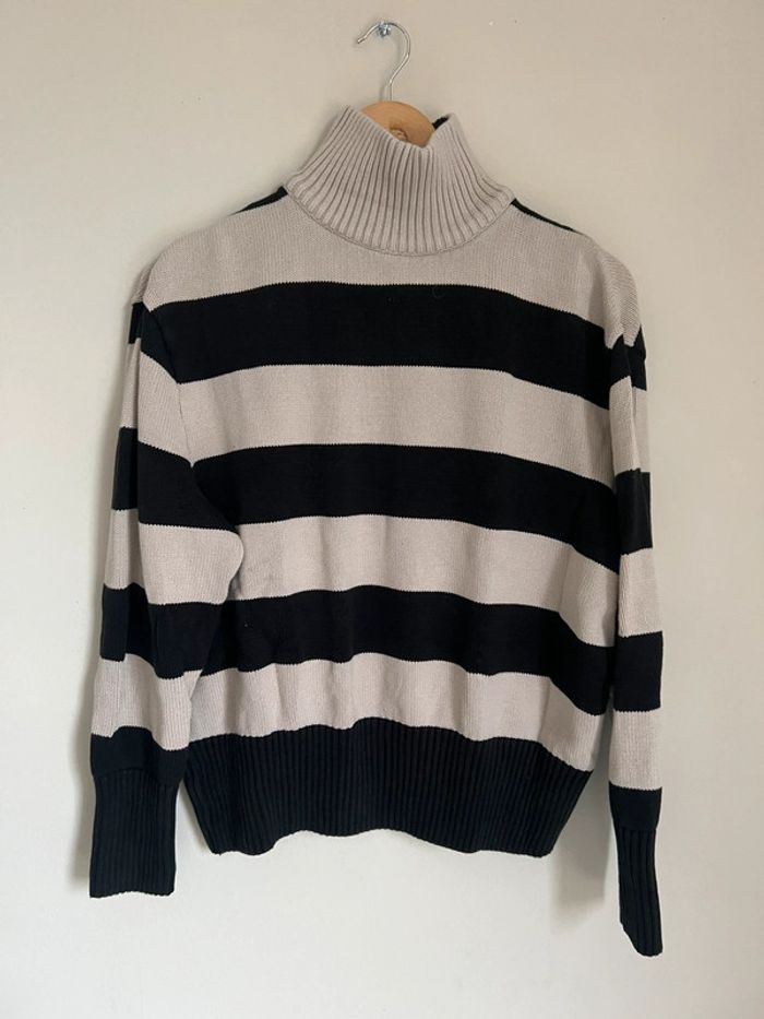 Pull col roulé Monoprix Marinière noire et crème Taille M oversize 100% coton