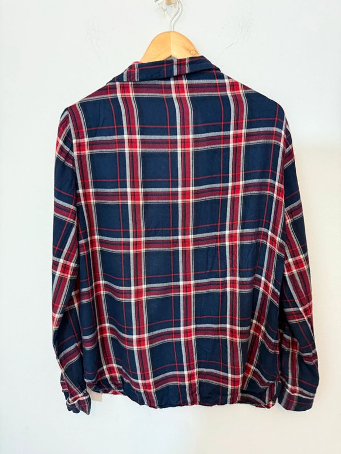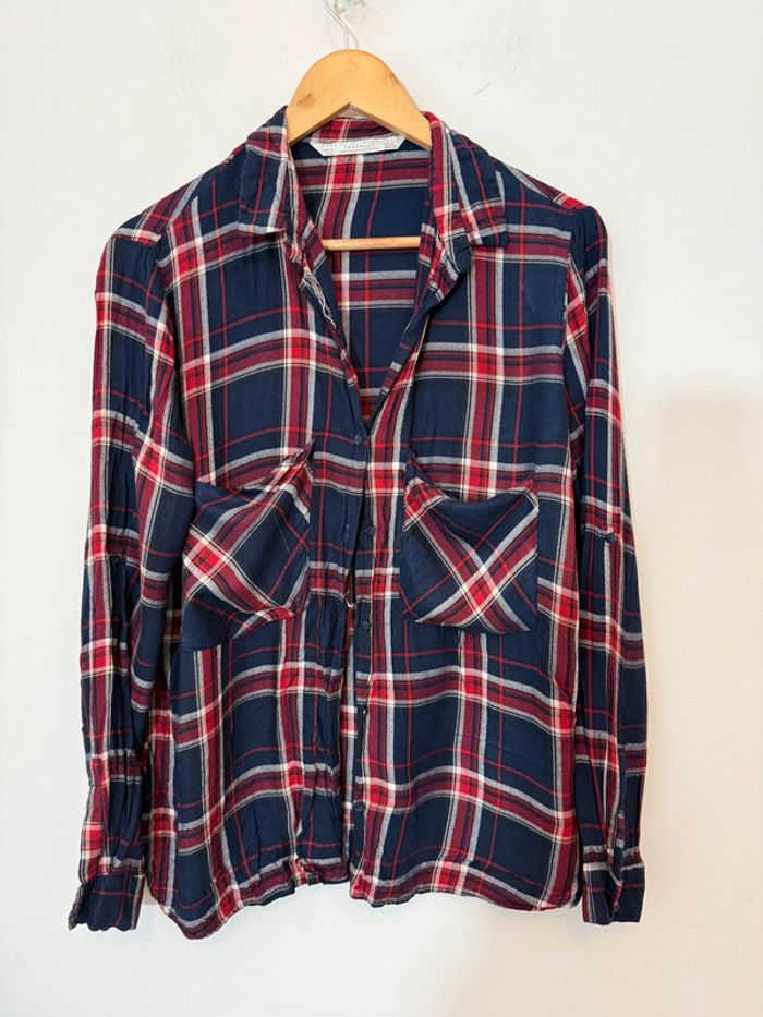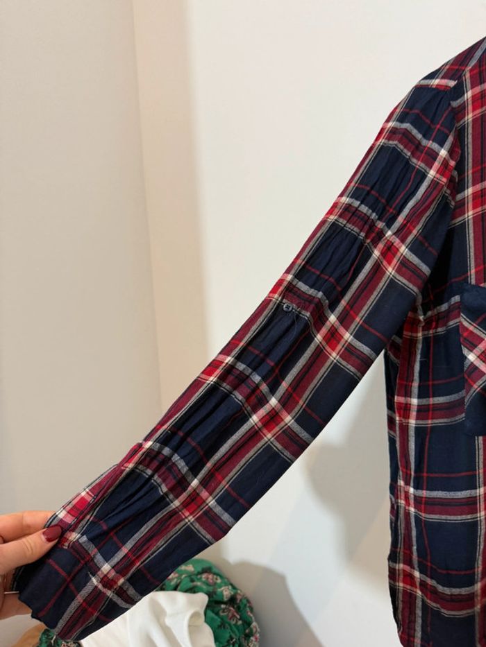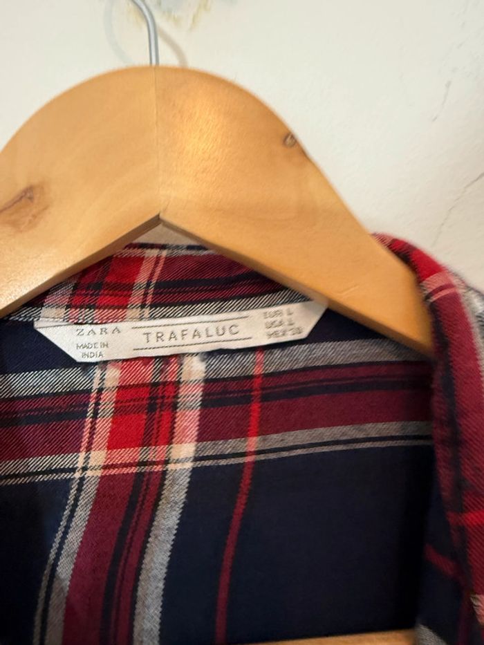 Chemise à carreaux Zara bordeaux et bleu marine taille L revers de poche décousu