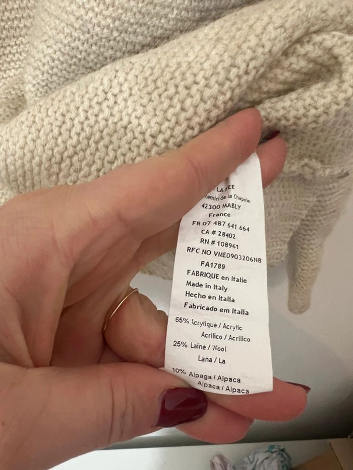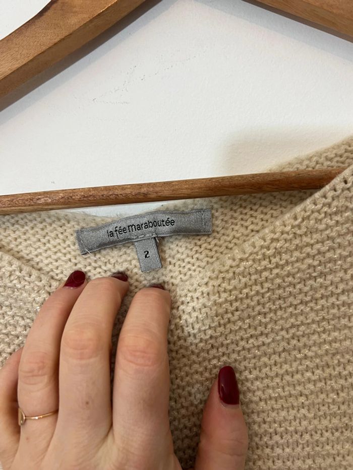 Pull La fée Maraboutée Maille serrée crème 25% laine 10% alpaga Taille 2