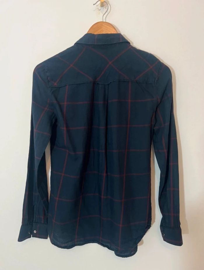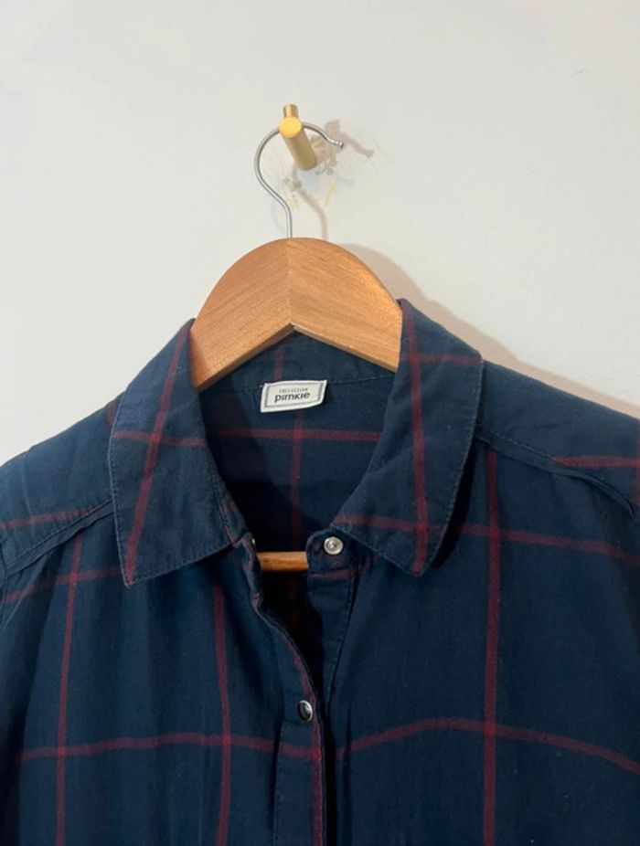 Chemise bleu marine à carreaux bordeaux Pimkie Boutons pressions noirs Taille XS oversize ok S