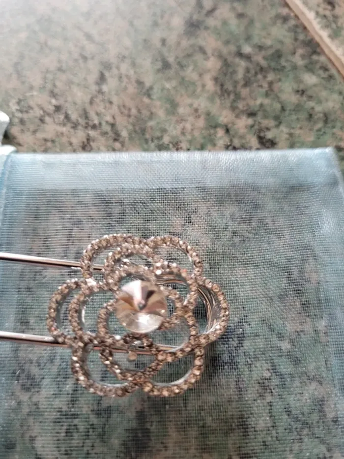 Épingle gilet fleur argentée avec strass - photo numéro 2