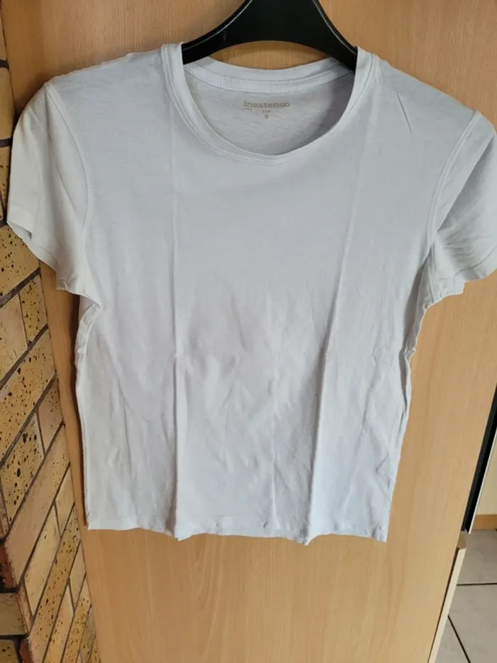 Taille S Blanc Manches courtes Bon état Aisselle à aisselle 45 cm Haut en bas 57 cm