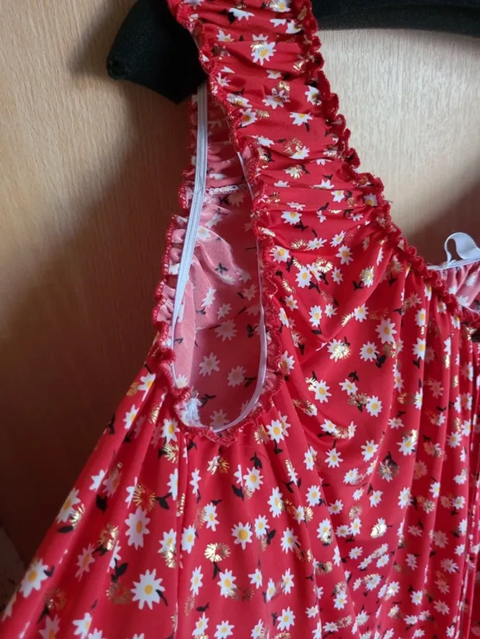 Tunique robe à bretelles rouge et dorée - photo numéro 5