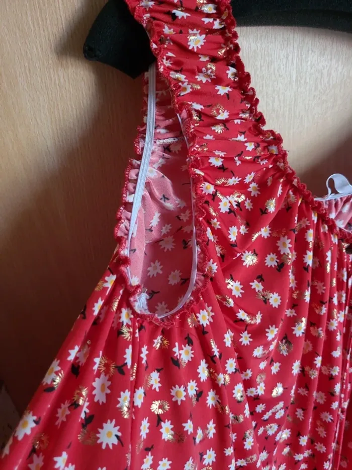 Tunique robe à bretelles rouge et dorée - photo numéro 7