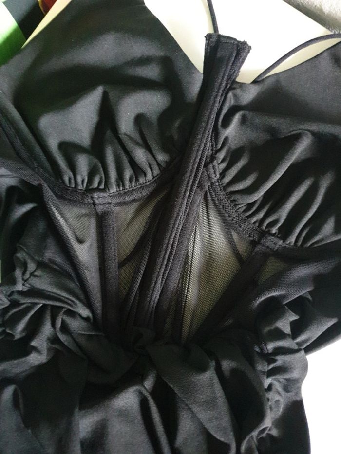 Dessous de poitrine transparent sur moitié du ventre, bretelles croisées dans le dos. Tissu élastique.Tres moulante et sexy. Ref A0446 #fripyfemmeXS