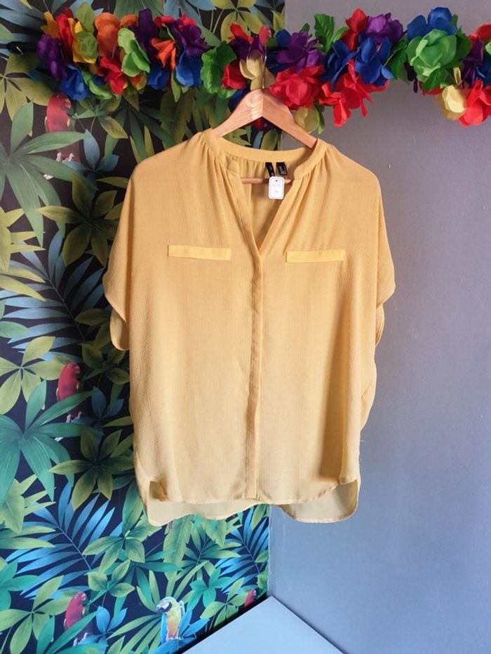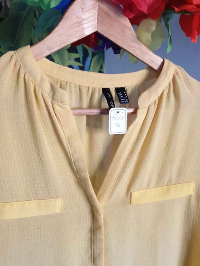 Blouse plutôt longue et large. Tissu transparent, bon état, quelques fils tirés. Ref A0279. #fripyfemmeM