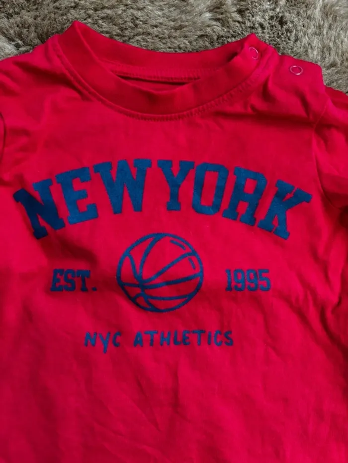Lot tee shirt rouge/bleu basket Primark t.9m