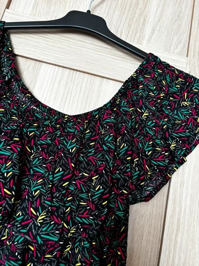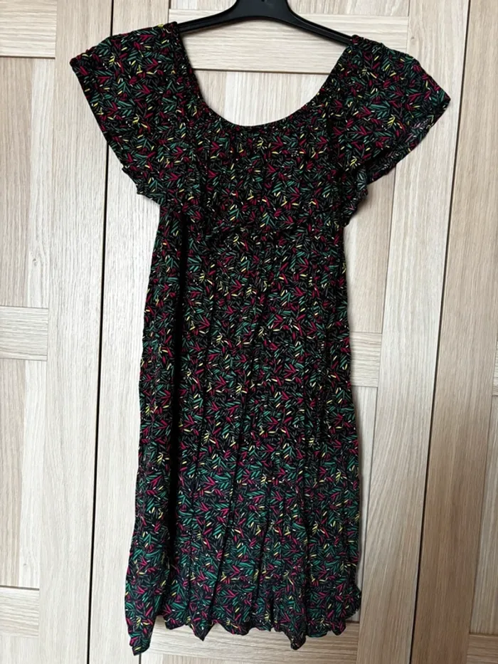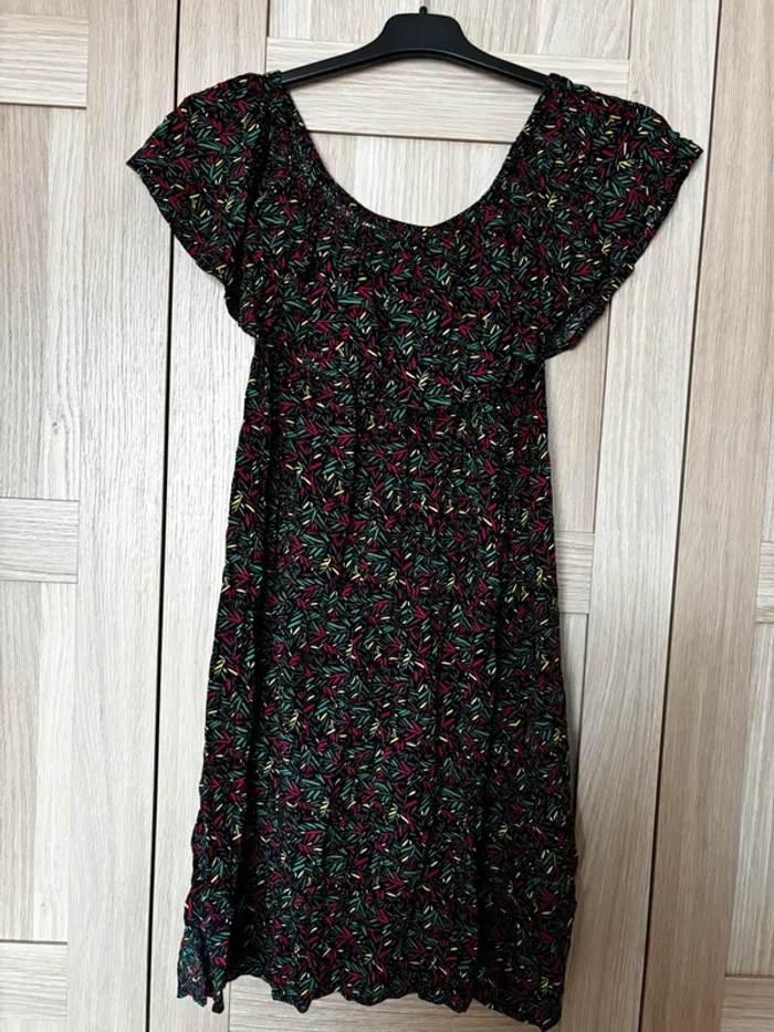 Robe noir feuilles rose/vert/jaune GEMO t.42