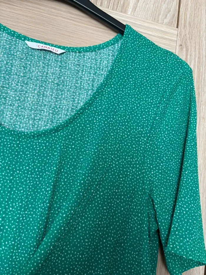 Robe verte points blancs Camaïeu t.l - photo numéro 3