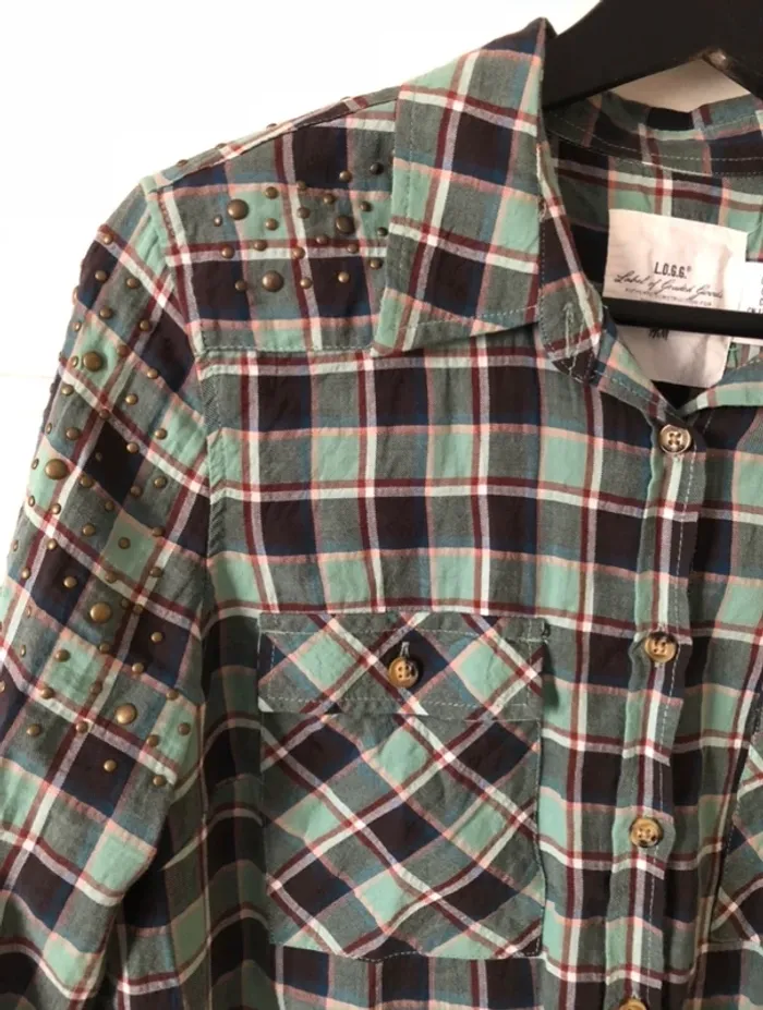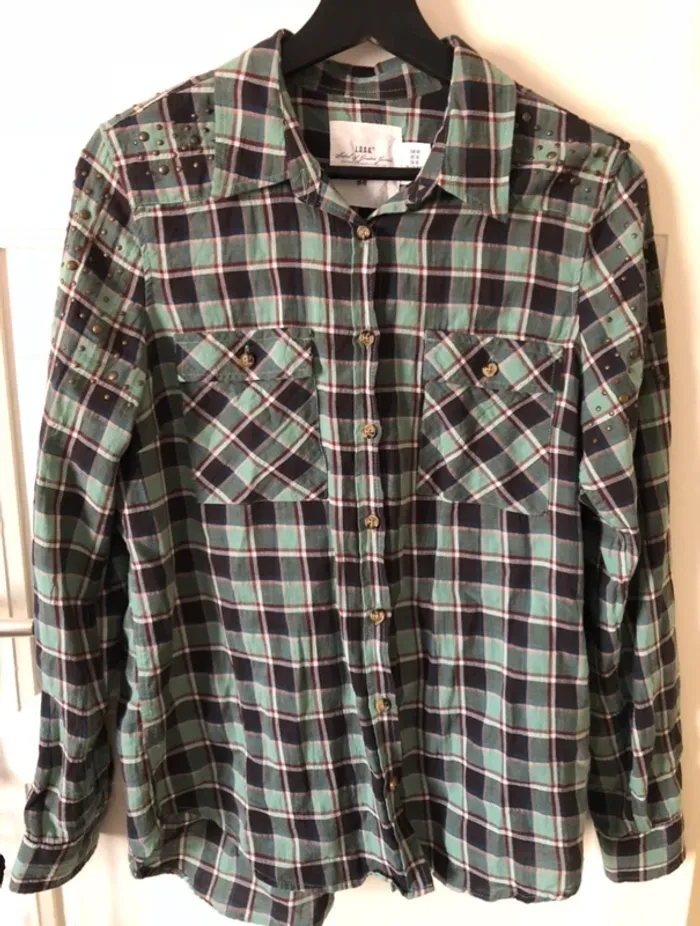 Chemise à carreaux automne verts/bleus/noirs avec clous H&M taille 40 Peu portée TRÈS BON ÉTAT #chemisecarreaux #clous #chemise40 Retrouvez tous mes articles en taille L/40 : #IxFeelxInsaneL40