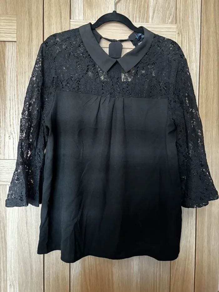 Blouse noire dentelle col Claudine KIABI t.l - photo numéro 1