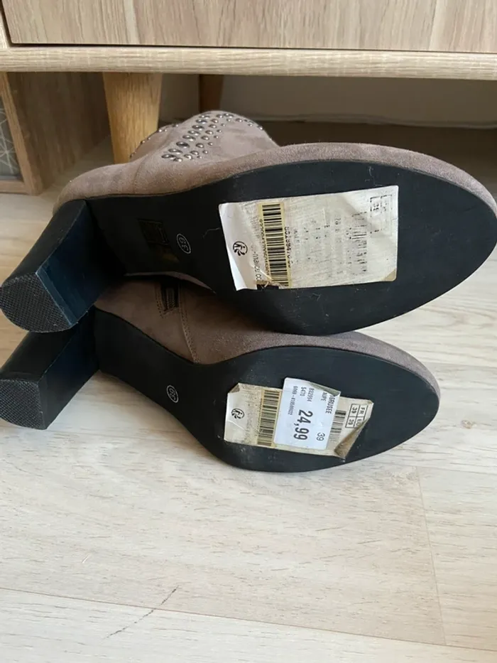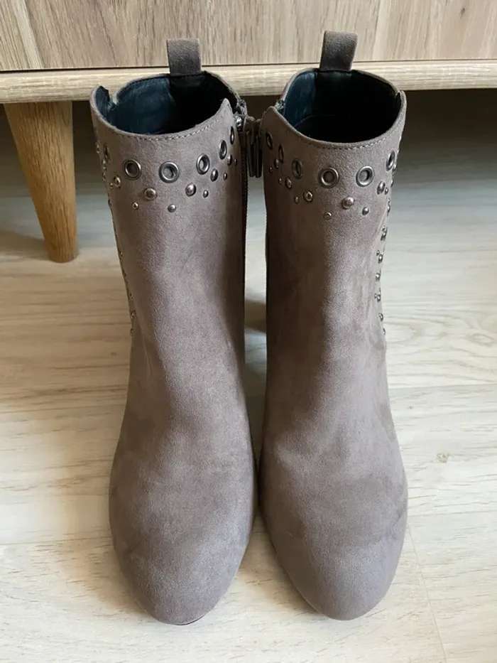 Bottines à talons taupe GRAIN DE MALICE taille 39 talons de 8cm NEUF AVEC ETIQUETTE (prix d’achat 24,99€) #bottines #clous #automnehiver Retrouvez toutes mes chaussures: #IxFeelxInsaneChaussures