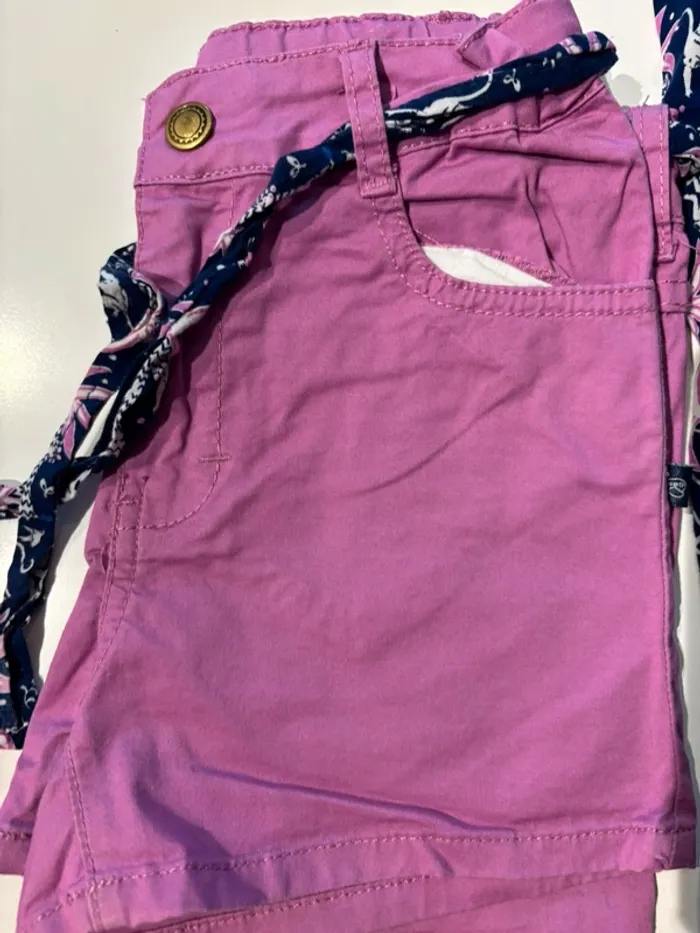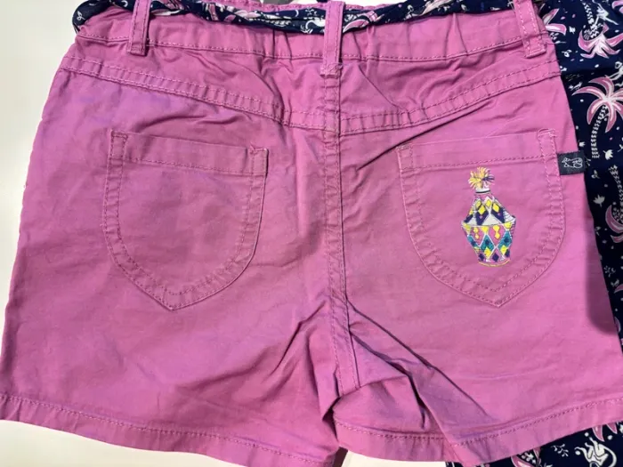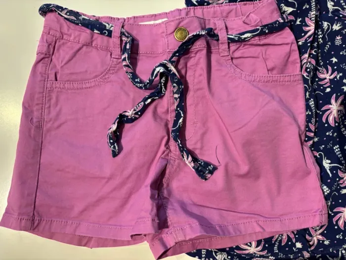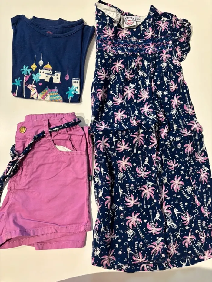Ensemble 6 ans La compagnie des petits 1 short rose et tee shirt marine assorti 1 robe fluide très agréable ( petit accroc cf photo)