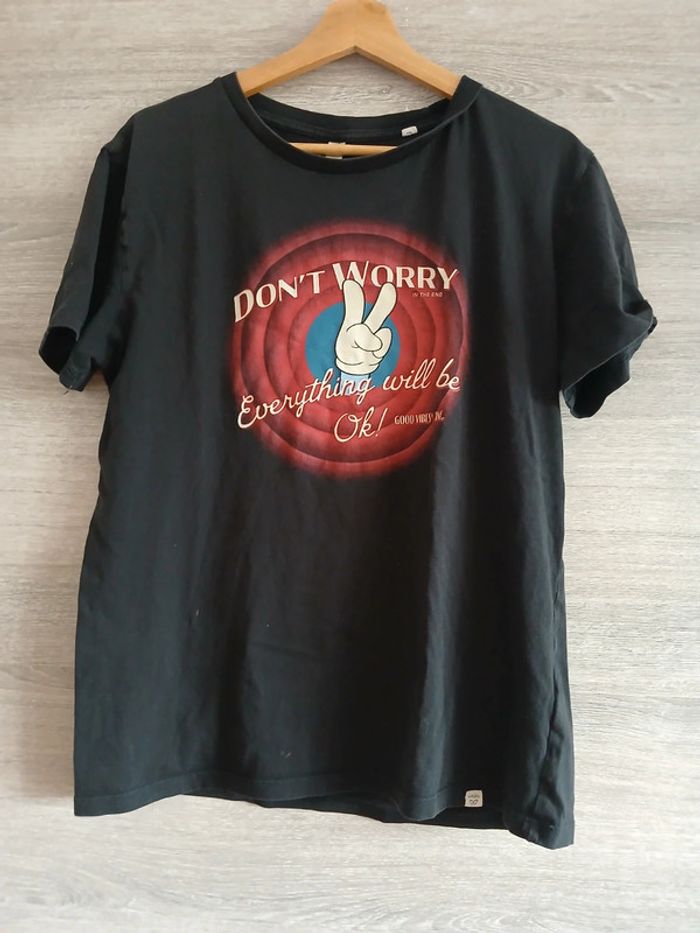 Tee-shirt noir imprimé Don't worry Taille L Petite tache de délavé