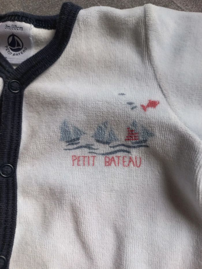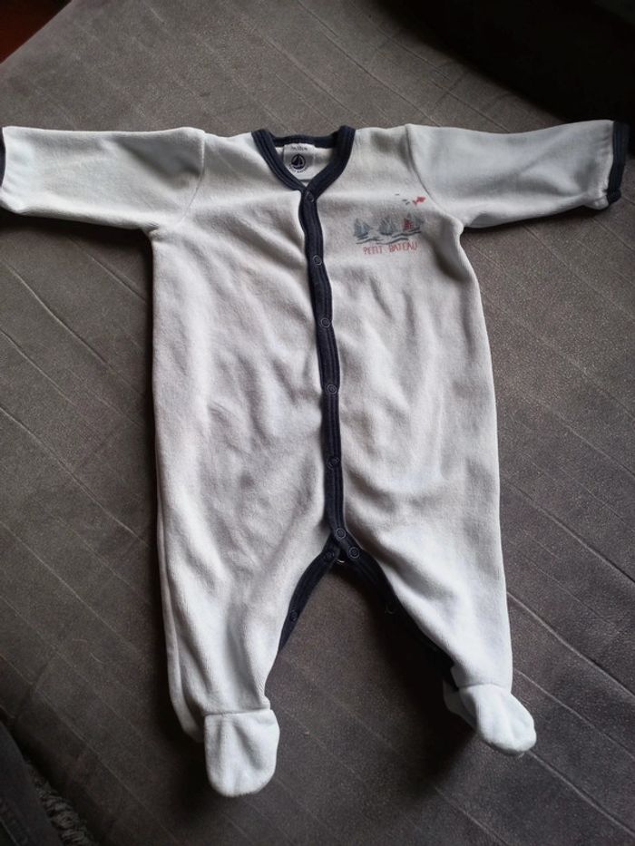 Petit pyjama plutôt garçon en bon état. Velours bleu ciel. Taille 3 mois 60cm. #monbabylou3mois