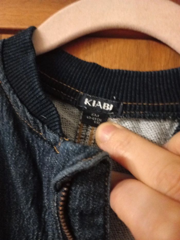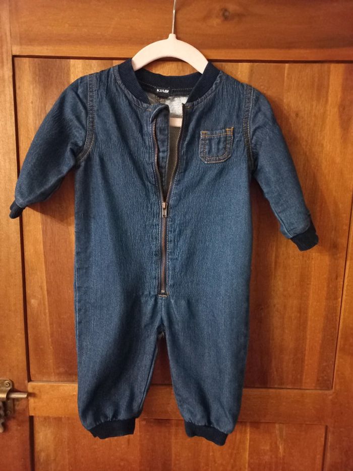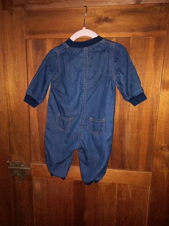 Petite combinaison tissu jean en bon état. Super rendu avec un joli petit haut en dessous porte légèrement ouverte. #mababylou6mois
