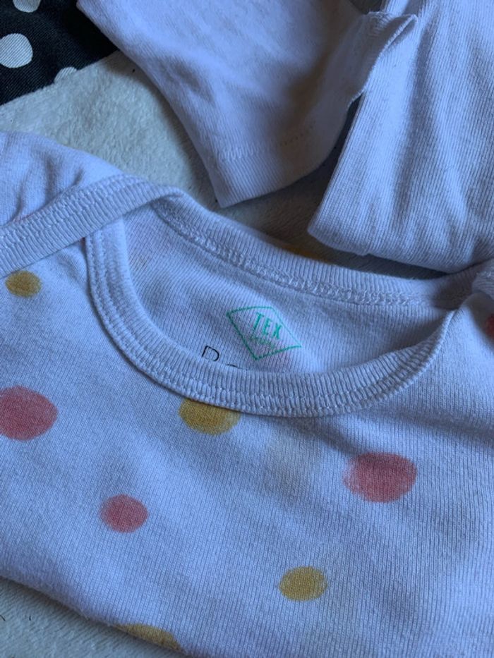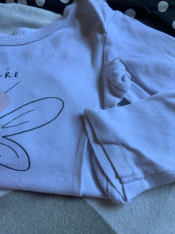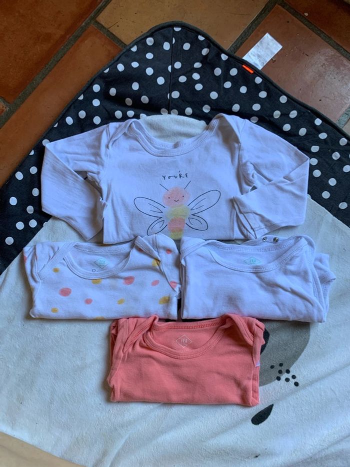Lot de 4 pièces manches longues. Tâches possibles légères. La plus visible est sur photo du body à pois. #mababylou24mois