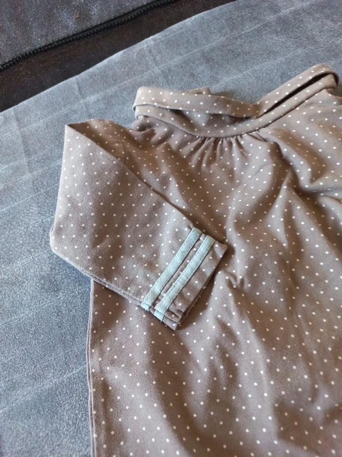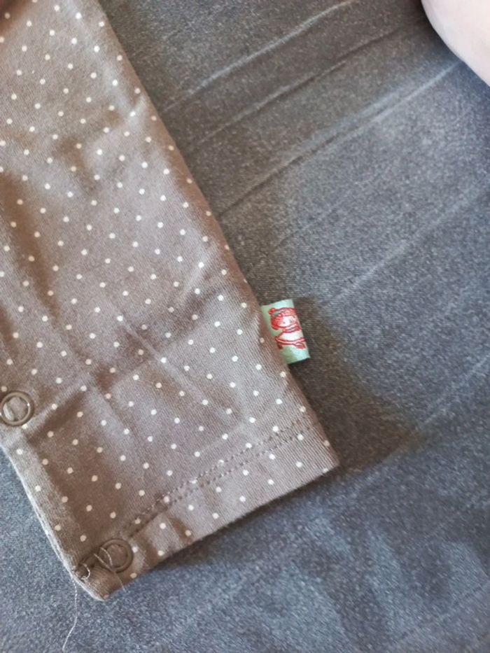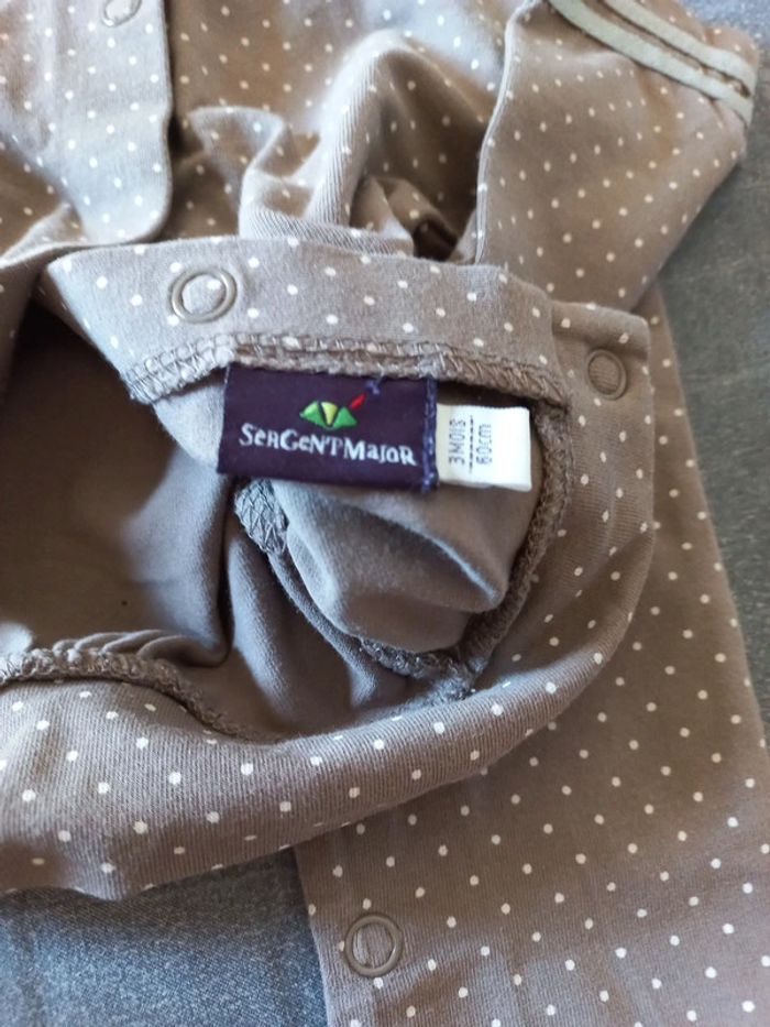 Petit pyjama combi en parfait état, coloris taupe à pois blancs taille 3 mois #mababylou3mois