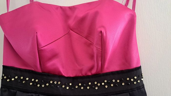 Robe de cocktail rose et noire. Portée 2 fois. Doublure en tulle. Peut se porter avec ou sans bretelles. Bretelles réglable.