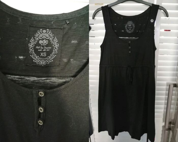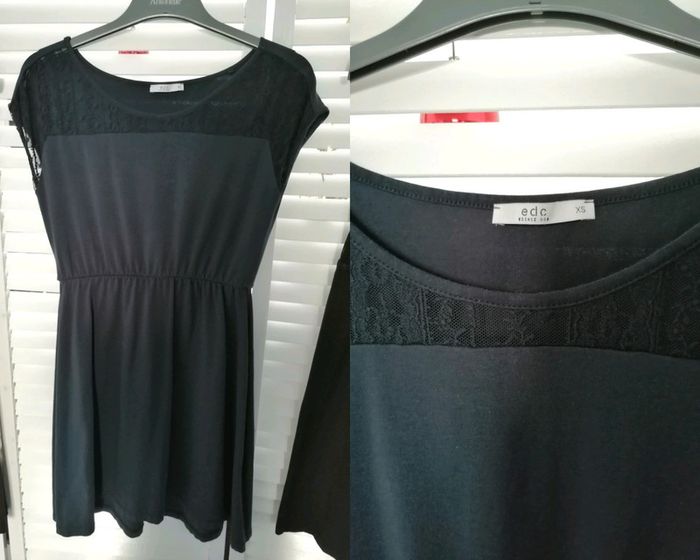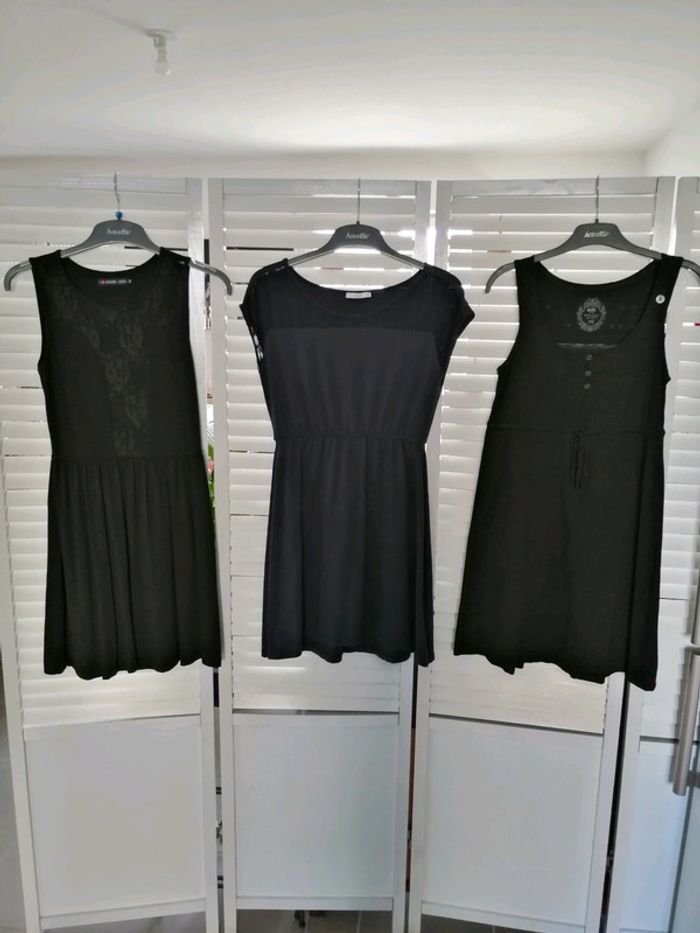 Lot de 3 robes d'été 1 noire avec un plastron en dentelle, taille XS, marque Even&Odd. 1 bleu marine avec de la dentelle sur tout le haut des épaules et cou, taille XS, marque EDC 1 noire avec une ceinture en dessous de la poitrine, taille XS, marque EDC. Celle ci est en bon état car plus portée , les 2 autres en très bon état. N'hésitez pas à me poser des questions 😊