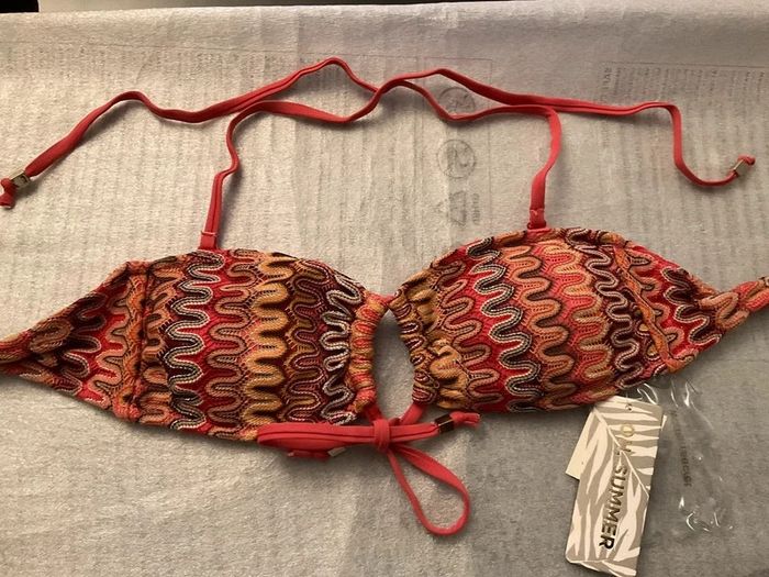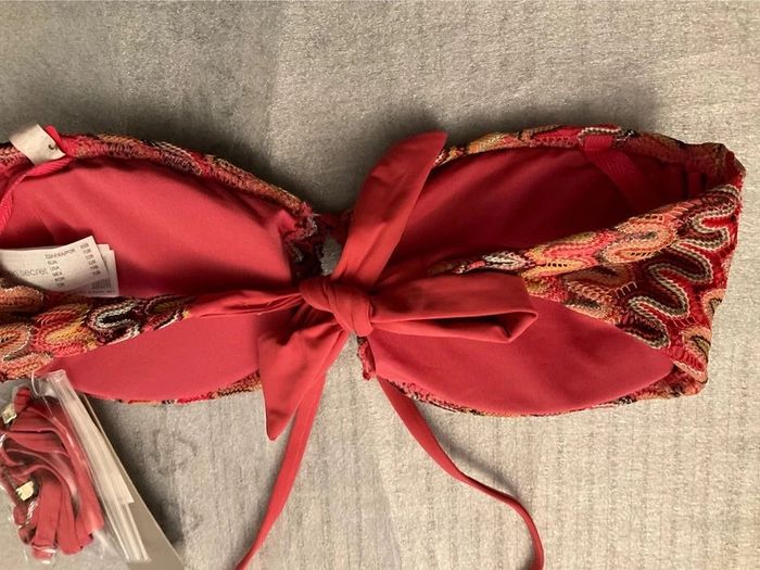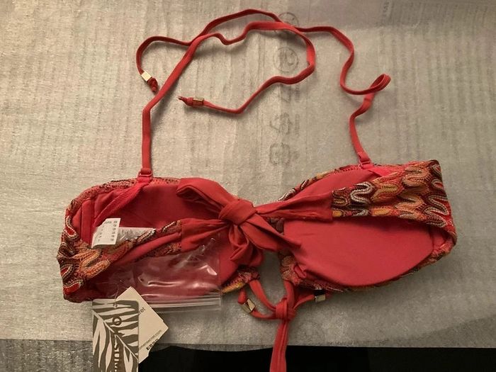 Soutien-gorge bandeau, sans armatures Marque Women’secret Couleur corail Taille 85B Peut se porter sans ou avec bretelles à nouer autour du cou Neuf avec étiquettes, jamais porté #maillotdebainAngestef74