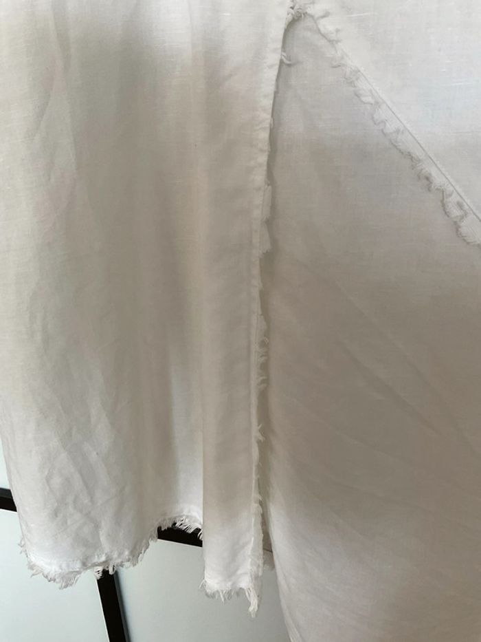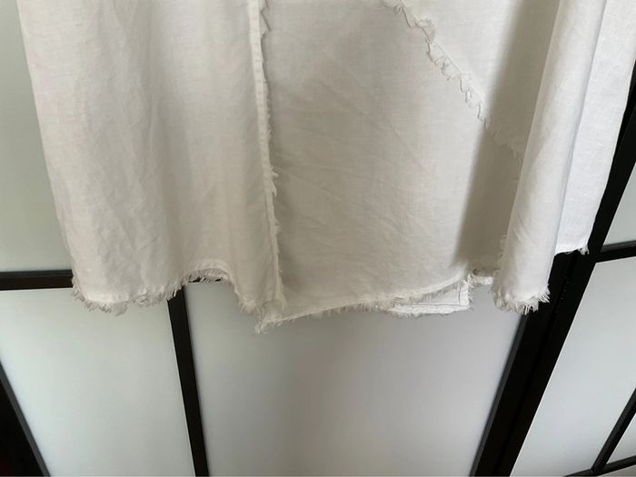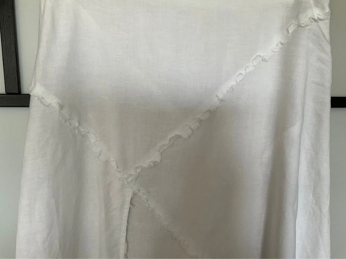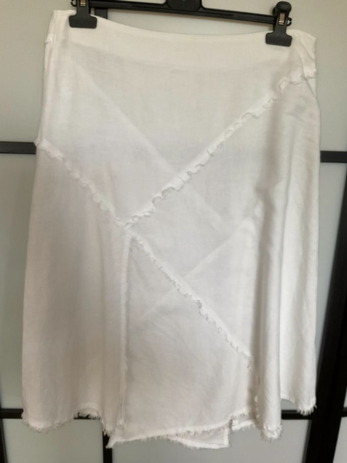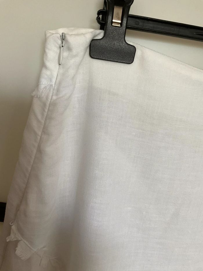 Jupe blanche fendue à mi hauteur Mesure 42 cm à la taille (84 cm de tour) Se ferme grâce à une fermeture éclair sur le côté