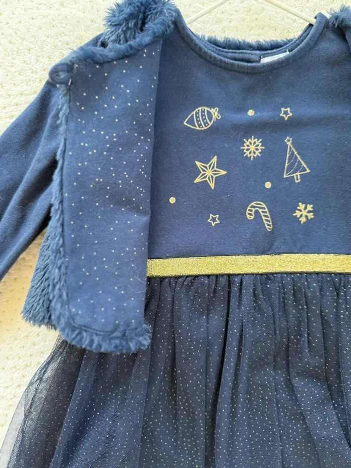 Ensemble robe et gilet velours Neuf Bleu marine 12mois