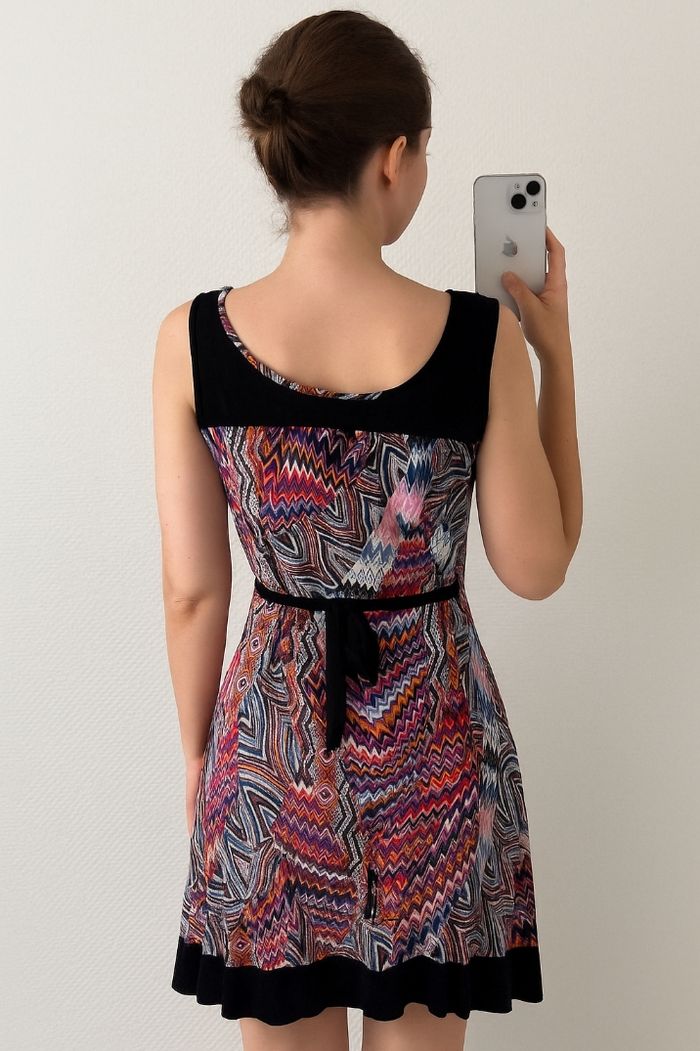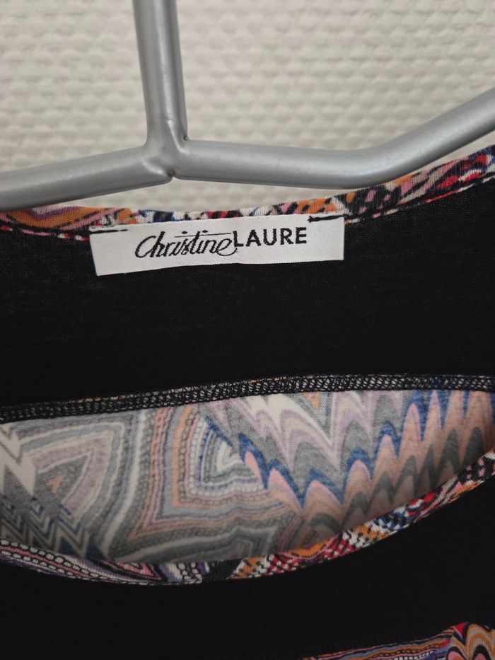 💰 Réductions activées sur les lots robe d'été de la marque française Christine Laure. Elle est en bon état, portée quelques fois seulement. Composition : 96 % viscose, 4 % élasthanne, ce qui la rend très agréable à porter, légère et un peu extensible. Motif : Graphique et coloré, dans les tons de bleu, rouge, beige et noir. Le haut de la robe est uni noir, avec un décolleté discret. Taille : 1. Elle convient à une taille S. Coupe : Cintrée, elle met bien en valeur la silhouette. Parfaite pour les beaux jours ou une soirée d'été !