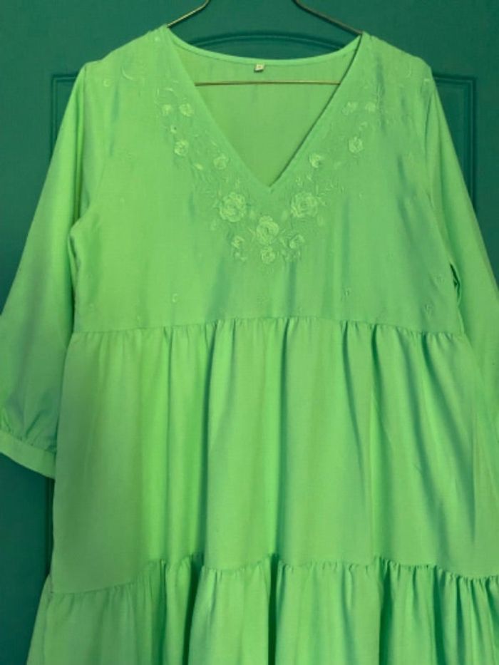 Très belle robe vert d’eau avec un petit défaut qui se trouve niveau aisselles derrière donc pas trop visible