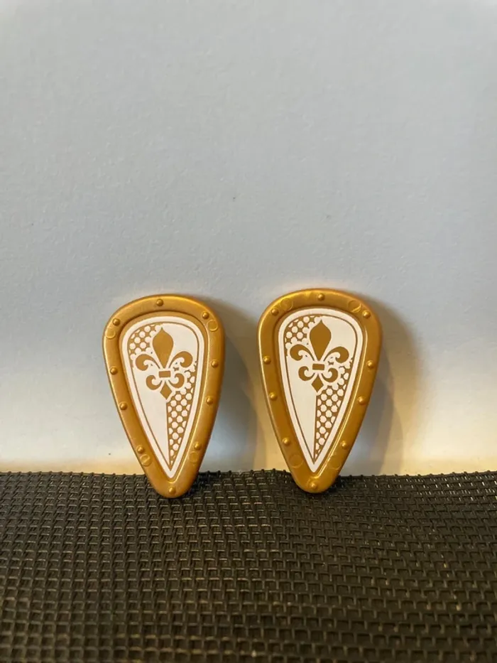 Attention : commandes minimum de 5€. Playmobil lot 2 boucliers chevalier Lys doré et blanc 6847 moyen âge pièces détachées. Bon état général. Voir photos. Pour voir toutes mes annonces Playmobil, cliquez sur le lien suivant #playmobilbrocantegames Pour voir toutes les annonces Playmobil univers chevalier château #chevalierbrocantegames  #jouet #brinquedos #toys #figuras #figurina #collection #diorama #playmobilbrocantegames #piecesdetachees #piecederechange #accessoires #accessories #accessorios #palais #chateau #princesse #roi #reine #princes #custom #geobra #set #medieval #moyenage #chevalier #serie #serie5 #dragon #noir #rouge #vert #hallebarde #forteresse #knight