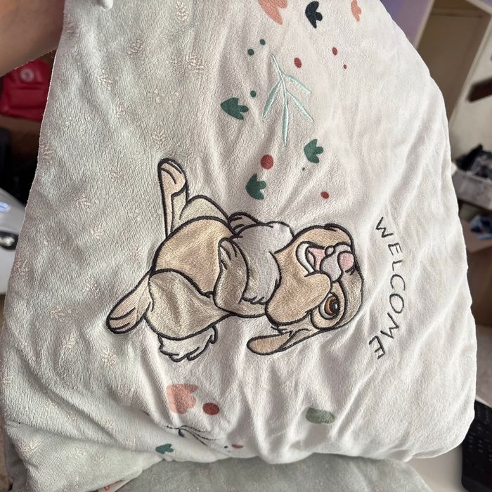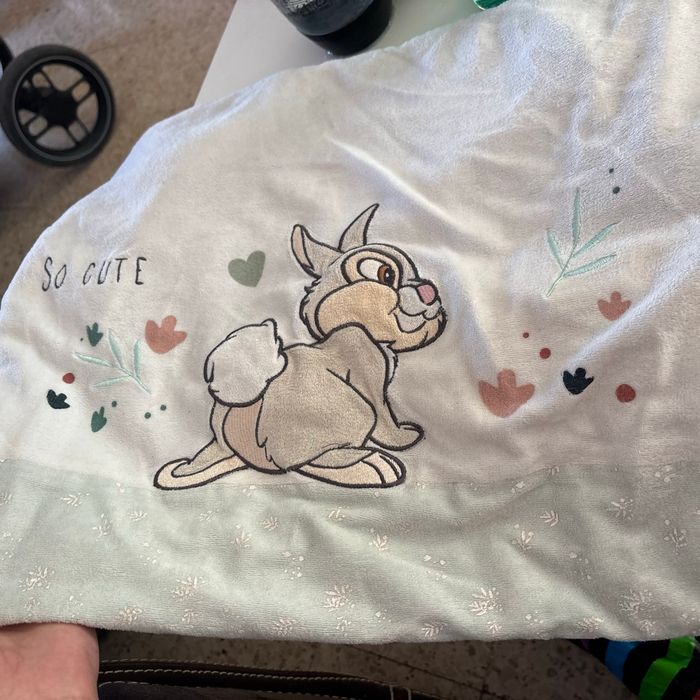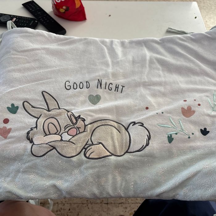 Tour de lit bleu avec lapin en bon état avec l’ensemble des attaches