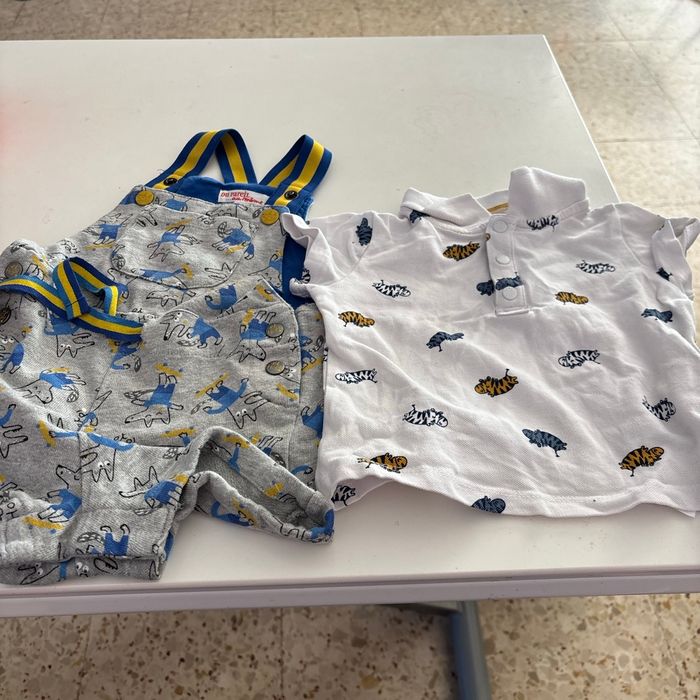 Salopette short manche courte et polo blanc de la marque pareil au même taille 9 mois 71cm