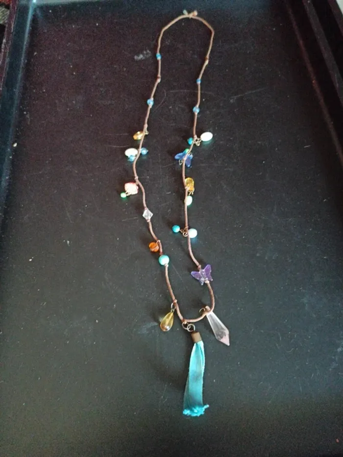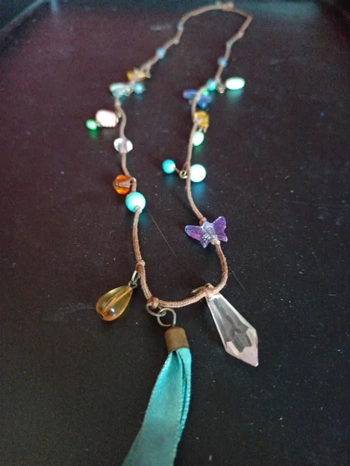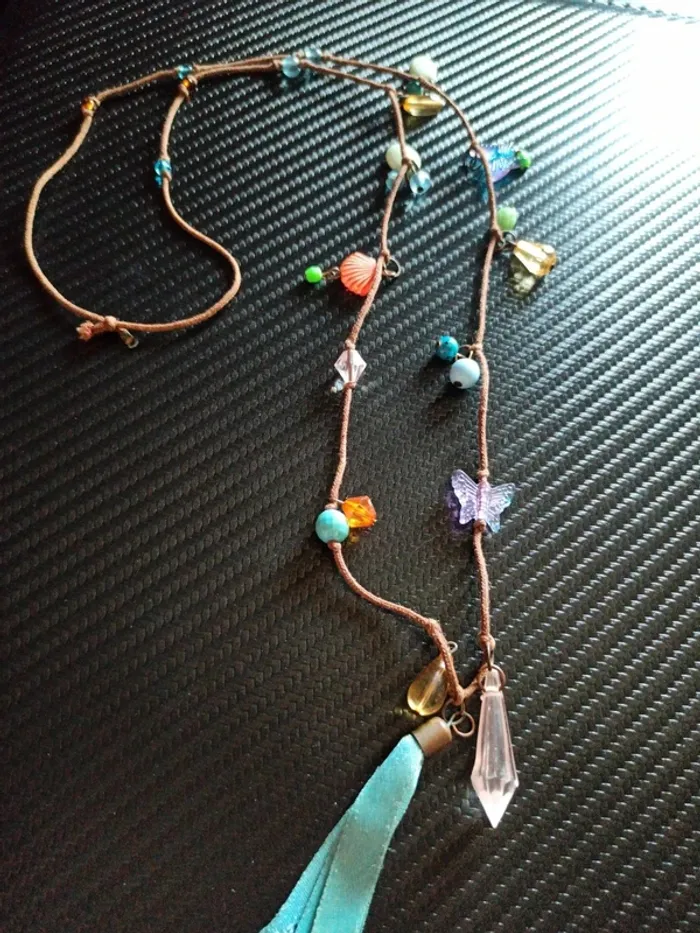 Un sautoir fait à la main, idéal pour ajouter une touche de fantaisie à votre look de plage avec ses perles en forme de cristaux, de papillons et coquillages. #bijoux #bijouxfantaisie #sautoirboheme #sautoirfantaisie #sautoir #cristal #papillon #coquillage #shell #butterfly #chachouuubijoux #chachouuucollier #chachouuumarron #chachouuubleu #chachouuujaune #chachouuurose #chachouuuviolet #chachouuuorange #chachouuuvert
