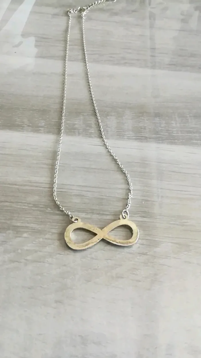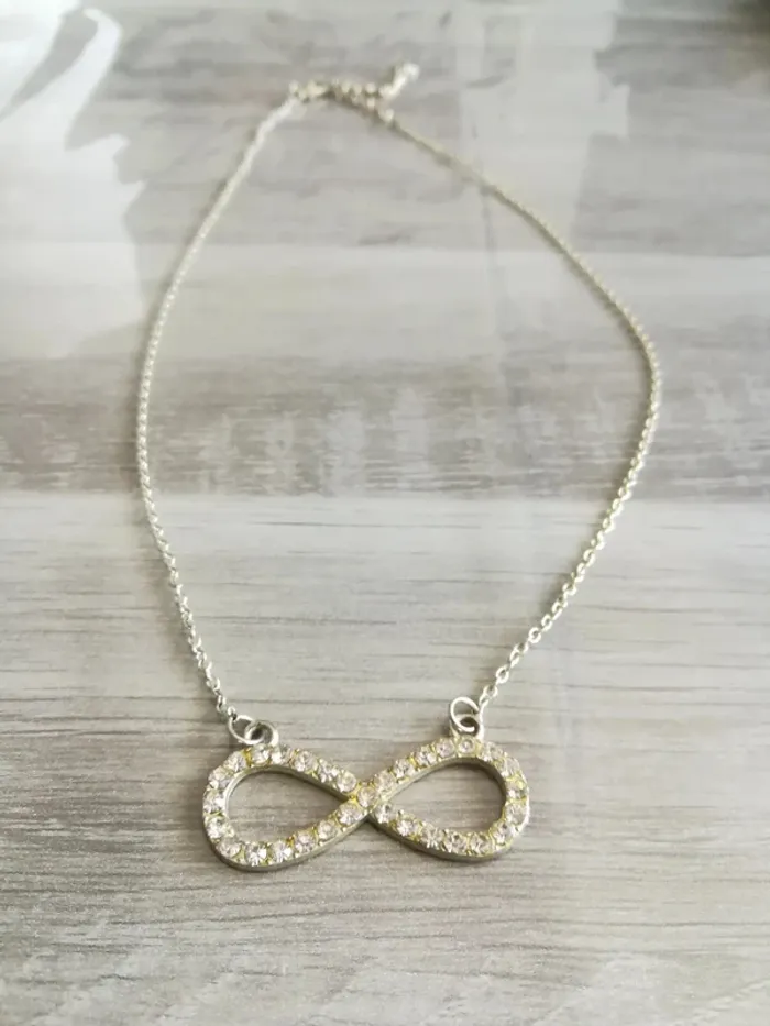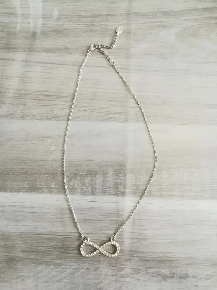 Très joli collier argenté infini. Peu porté. Mesure 23 cm réglé au minimum Mesure 26 cm réglé au maximum #chachouuubijoux #chachouuucollier #chachouuuargenté #collierinfini #infini #collierfemme #collierargenté