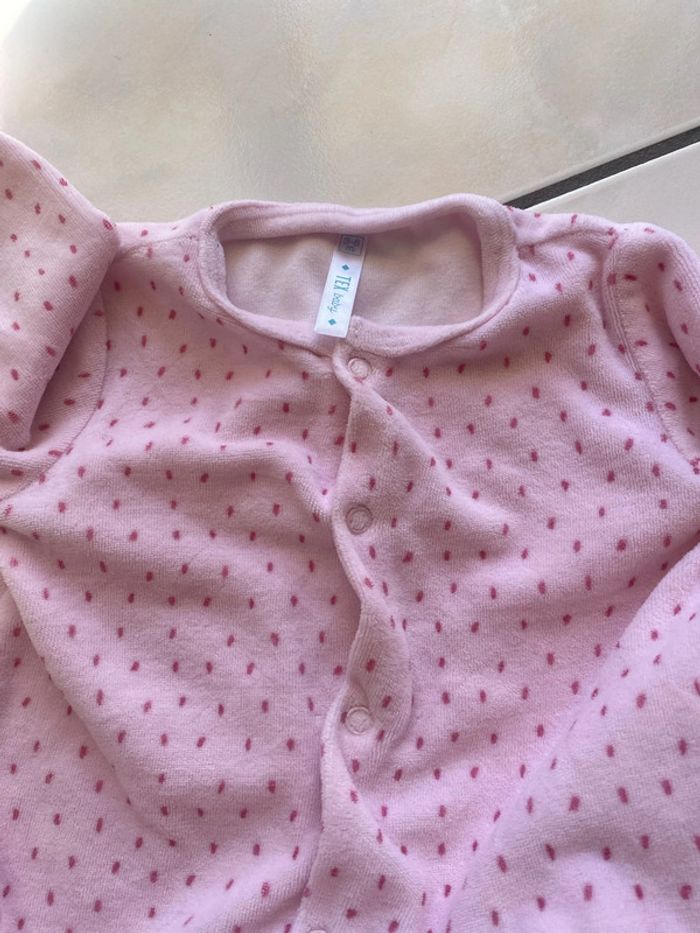 Un très bon état général Le pyjama a des dessins abîmés sur les pieds Les marques sont différentes