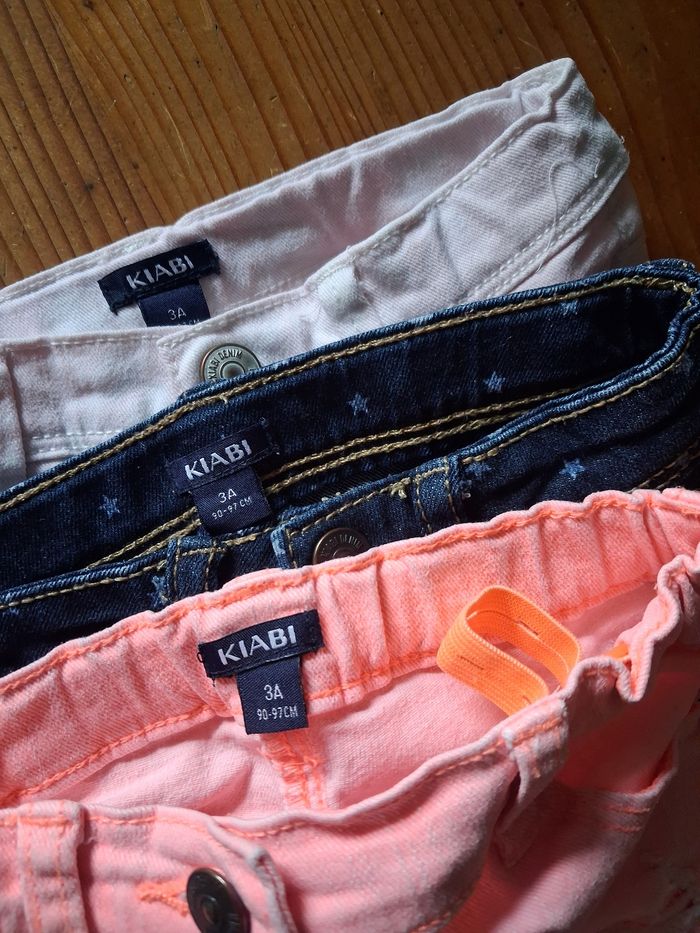 Lot de 3 shorts en jeans de Kiabi en 3 ans : - Le blanc à des reflets rosatre Ils sont en bon état général Élastiques a la taille sur tous