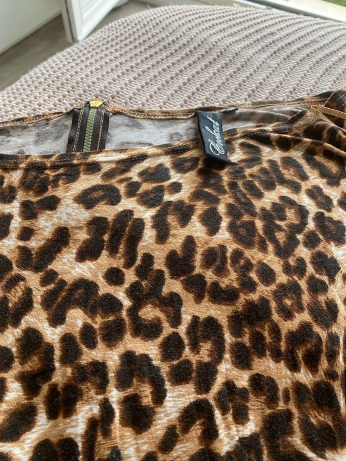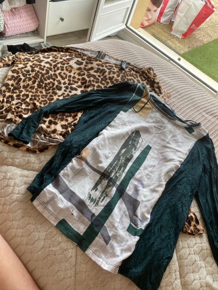 Le T-shirt léopard en xs, mais il taille très grand. Les marques sont différentes.