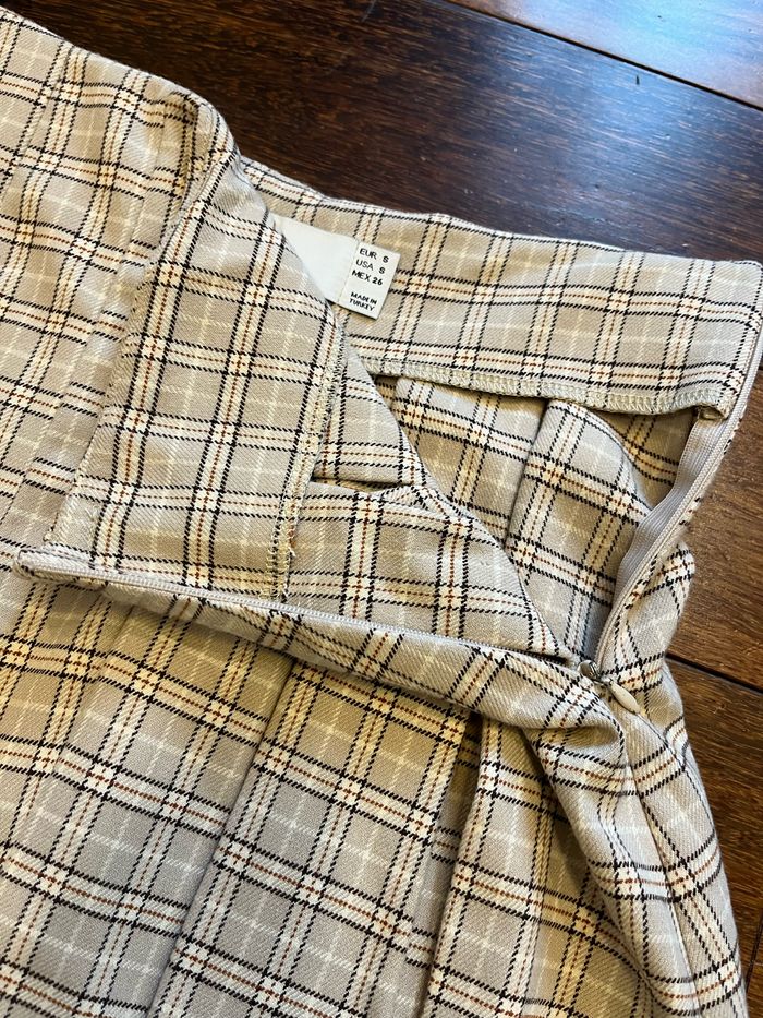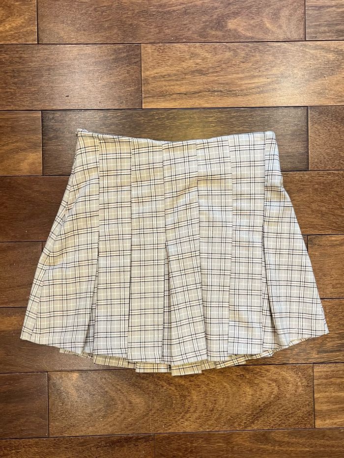 • Jupe courte à carreaux plissée. Zip sur le côté. Couleur beige, marron et noir. Parfait pour l’automne et l’hiver. Polyester, viscose, elasthanne • En parfait etat, porte 1 fois • taille S/36, bershka • 33cm a la taille, 35 cm de longueur
