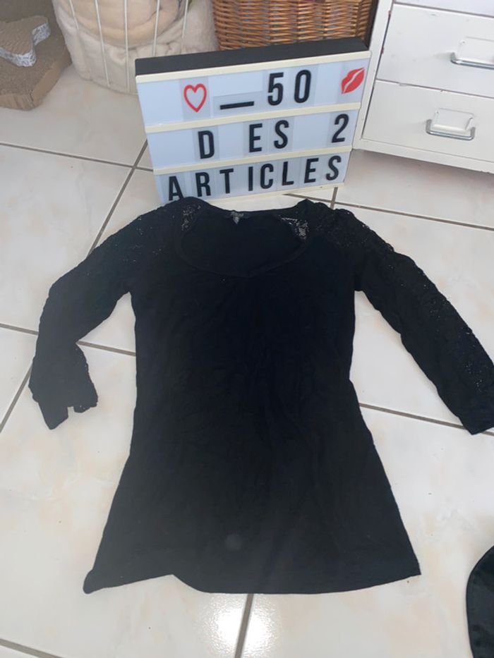 T-shirt manches longues avec dentelle noire taille S Bershka - photo numéro 1